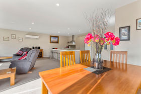 Open plan living and dining areas frame the sleek kitchen; neutral décor ensures you'll have no problem imbuing the home with your own sense of style and personality, and excellent indoor/outdoor flow means you'll spend plenty of time enjoying the easy-care grounds.