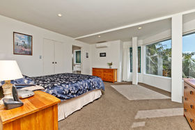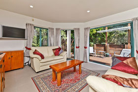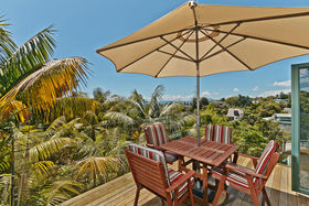 Superbly private indoor outdoor living flows seamlessly out from both the cosy family room,while formal dining and lounge flow to a wide deck with glass balustrades overlooking the leafy, green tropical bush setting and on out to the Hauraki Gulf