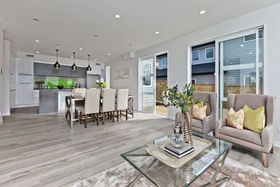 The interior has been decorated in a crisp colour palette of white and chocolate. You will also find modern features common to homes in the area such as underfloor heating in the bathrooms, keyless front door entry, door intercom and built in sound system. This is truly a beautiful home with more to see and is a short drive to Millwater motorway interchange or Silverdale shops.