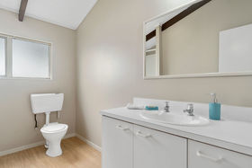 Struggling to get on to the property ladder? Tired of renting? Want to own your home? Love to have 3 bedrooms plus 2 bathrooms? Near new carpets? Enjoy alfresco BBQs with your friends on the extensive decking wrapping around the home with sunny north facing views. The gardens are attractive and there is plenty of storage space beneath the house for the home handyman and still scope for improvement.